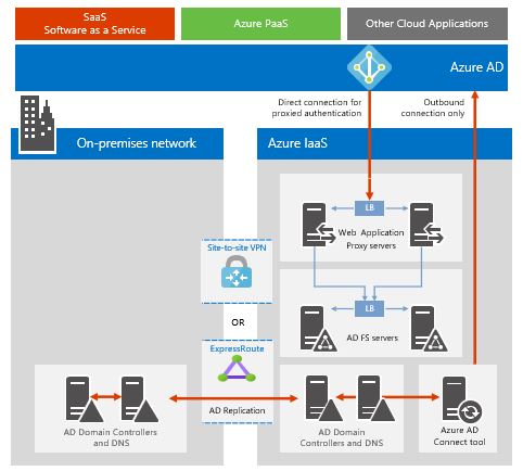 This solution provides access to all of Microsoft SaaS and cloud-based identity options for Azure PaaS & laaS apps, two below approaches are recommended, choose either one