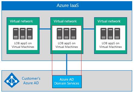 Below figure shows how an Azure AD domain services provides the authentication and other domain services to customer line of business applications running under Azure infrastructure as a service (IaaS)